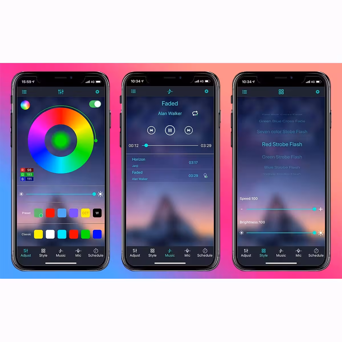 - Setare culoare fixă și modul muzică care reacționează la sunet