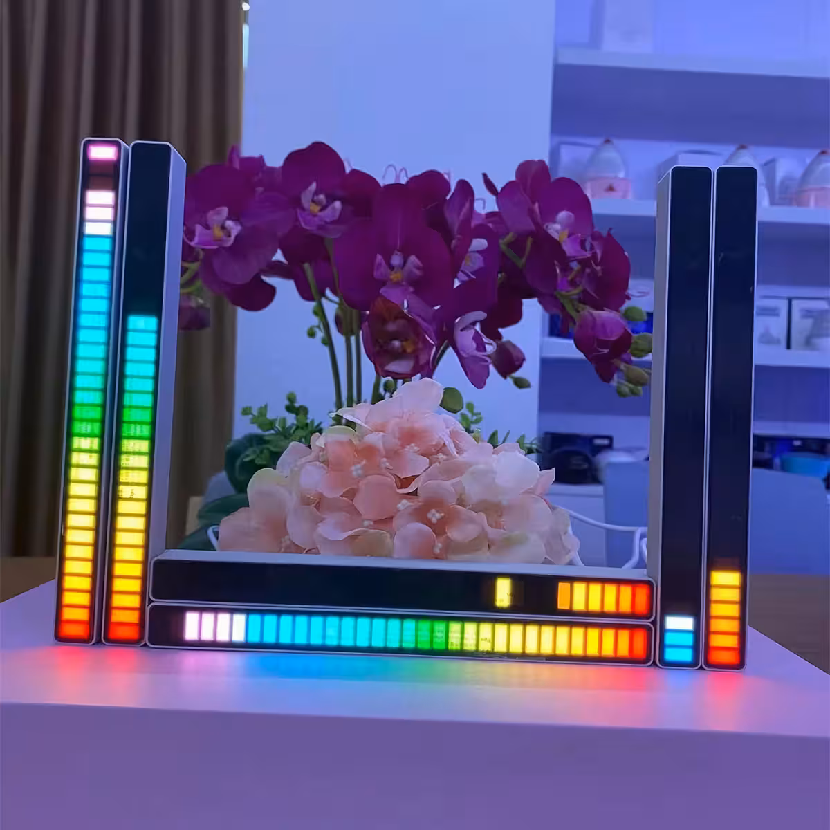 Bara LED RGB cu Activare Sonoră – VU Metru cu Jocuri de Lumini pe Muzică
