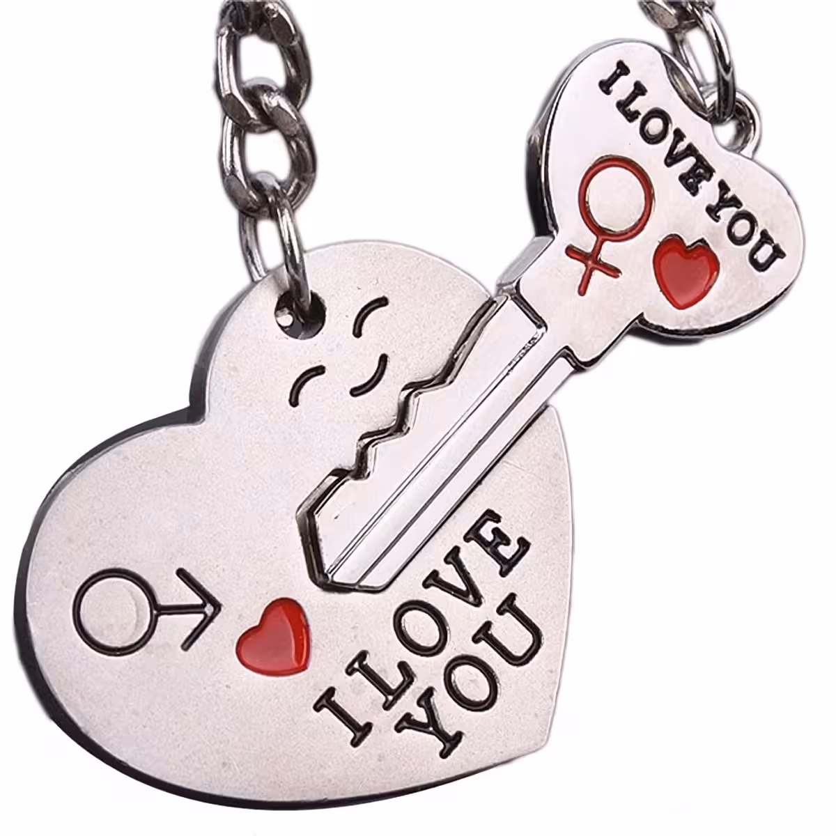 Acest set conține o inimă și o cheiță care se potrivesc perfect, reprezentând conexiunea unică dintre voi. Ideal ca cadou romantic sau prietenesc, brelocurile sunt realizate din aliaj de zinc durabil, cu finisaje de calitate, rezistente în timp.