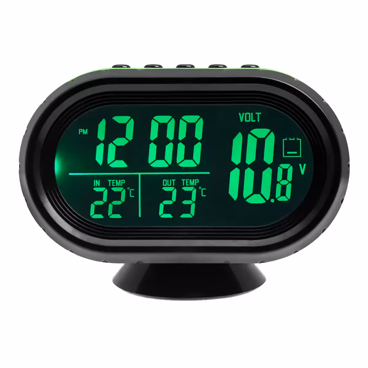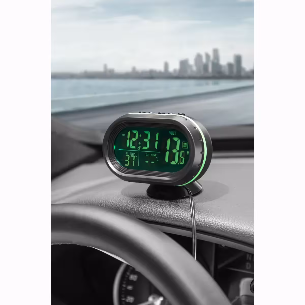 Instrument multifuncțional ideal pentru autoturisme, rulote, camioane, tractoare sau bărci – oferă informații esențiale despre tensiunea bateriei, temperatura interioară și exterioară, precum și afișarea orei.