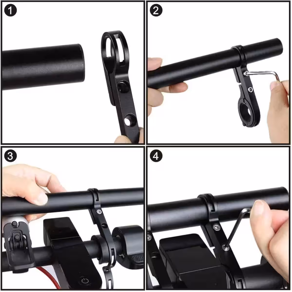 Extensie bara ghidon realizată din aliaj ușor de aluminiu, perfectă pentru montarea telefonului, farului, luminii, soneriei și altor accesorii pe orice bicicletă sau trotinetă.