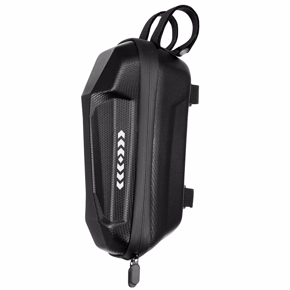 Această geantă de depozitare și borsetă pentru trotinetă electrică are un design simplu și minimalist, fiind ușor de montat datorită bretelelor ajustabile. Se deschide și închide rapid prin cele două fermoare rezistente, oferind acces facil la conținut.