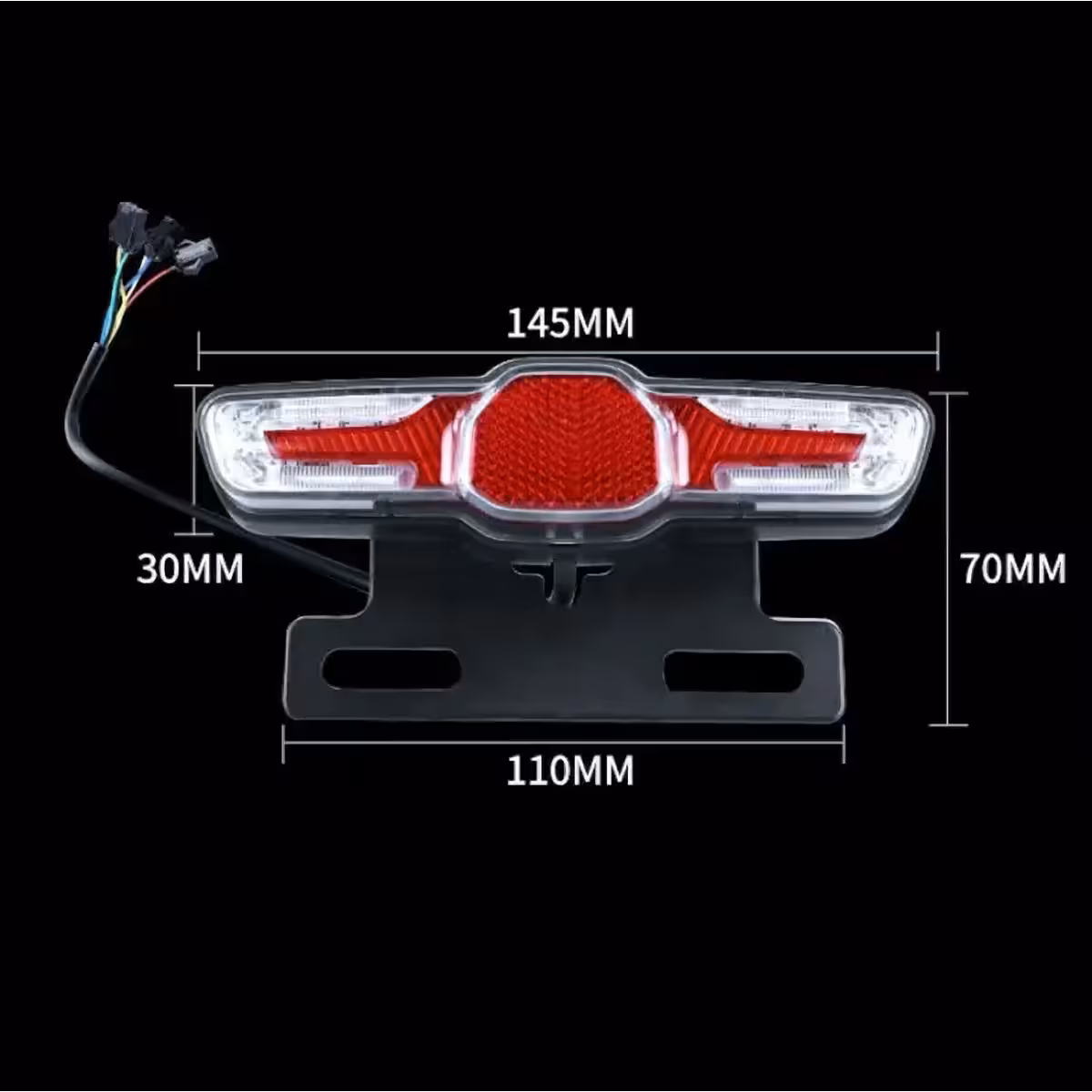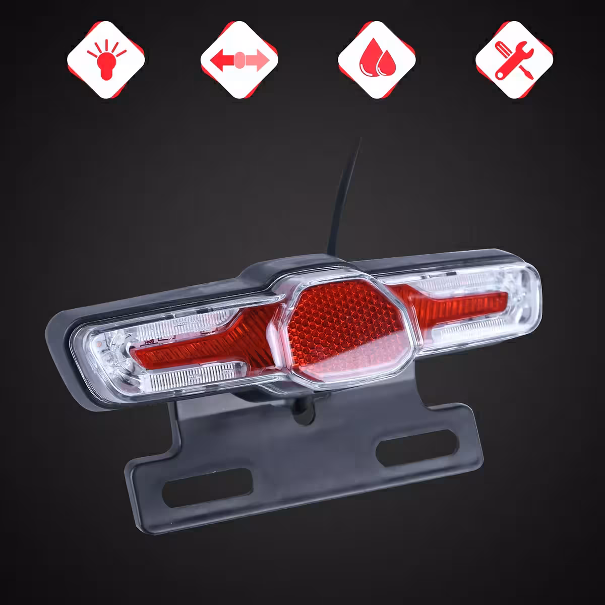 Lampa spate LED multifuncțională este ideală pentru trotinete electrice, biciclete electrice și scutere electrice. Oferă funcții de semnalizare stânga/dreapta, lumină de poziție pentru noapte și stop de frână.