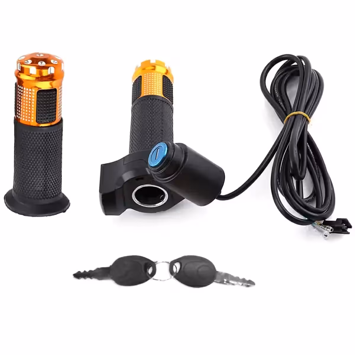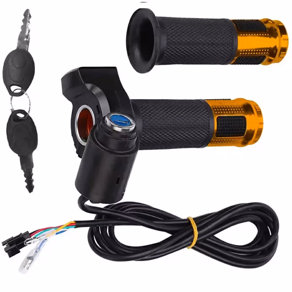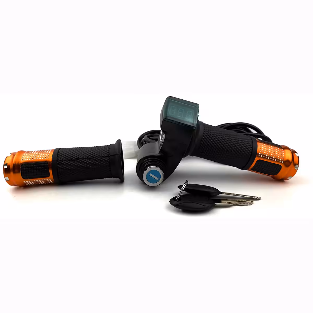 Manetă accelerație cu contact și cheie pentru biciclete și scutere electrice – voltmetru indicator baterie 12V-72V