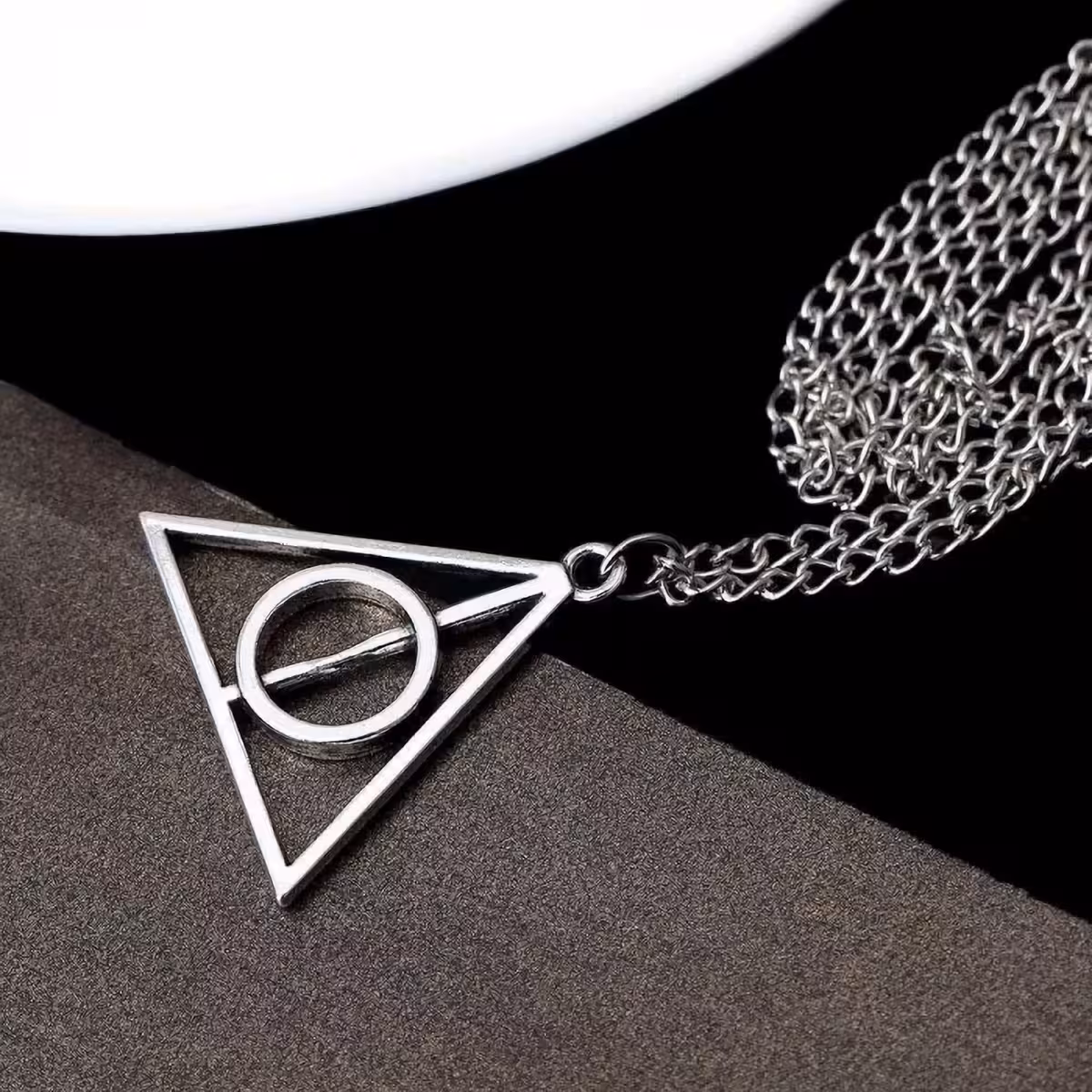 Acest pandantiv lănțișor reprezintă un simbol al magiei și misterului, oferind o notă elegantă și distinctivă ținutelor tale. Poartă cu mândrie simbolul Deathly Hallows și exprimă-ți pasiunea pentru universul Harry Potter în fiecare zi.