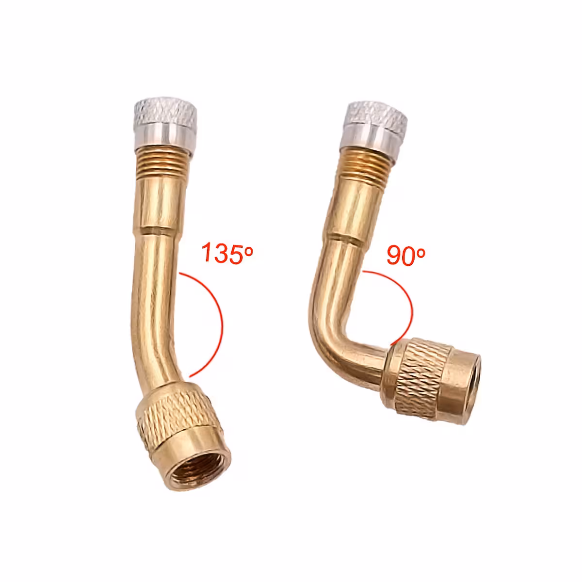 Realizat din cupru de înaltă calitate, rezistent la uzură și alunecare. Designul cu inel de etanșare intern permite montarea direct pe supapele roților fără demontare. Ideal pentru roți cu supape greu accesibile, indiferent de unghiul necesar (90° sau 135°).