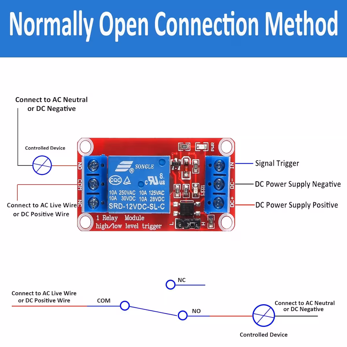 NO (Normally Open), precum și un jumper pentru alegerea tipului de trigger (High/Low).