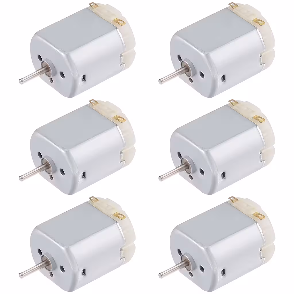 Setul include 6 motoare DC Mini 130, ideale pentru proiecte educaționale, roboți, ventilatoare și mecanisme simple. Funcționează la 3–6 V DC, oferind turație ridicată și dimensiuni compacte. Axul Ø2 mm × 8 mm este compatibil cu roți și pinioane standard pentru micro-motoare.