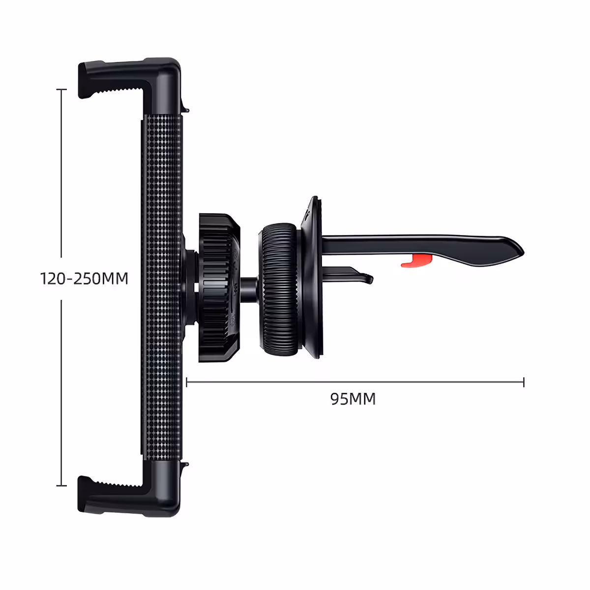Acest suport tabletă auto este proiectat pentru a fixa în siguranță tabletele cu dimensiuni între 7″, 8″, 10″, 11″ și 12 inch. Prin designul său ajustabil, asigură o prindere fermă fără a obstrucționa vizibilitatea șoferului sau a crea disconfort.