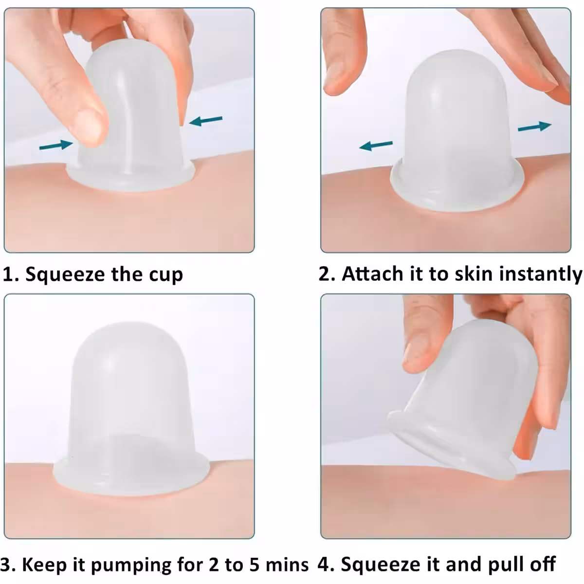 Setul de 4 ventuze din silicon este ideal pentru masaj anticelulitic, stimularea circulației sanguine, reducerea stratului adipos și relaxare musculară. Poate fi folosit acasă, în siguranță, pentru rezultate similare cu cele din saloanele de masaj profesional.