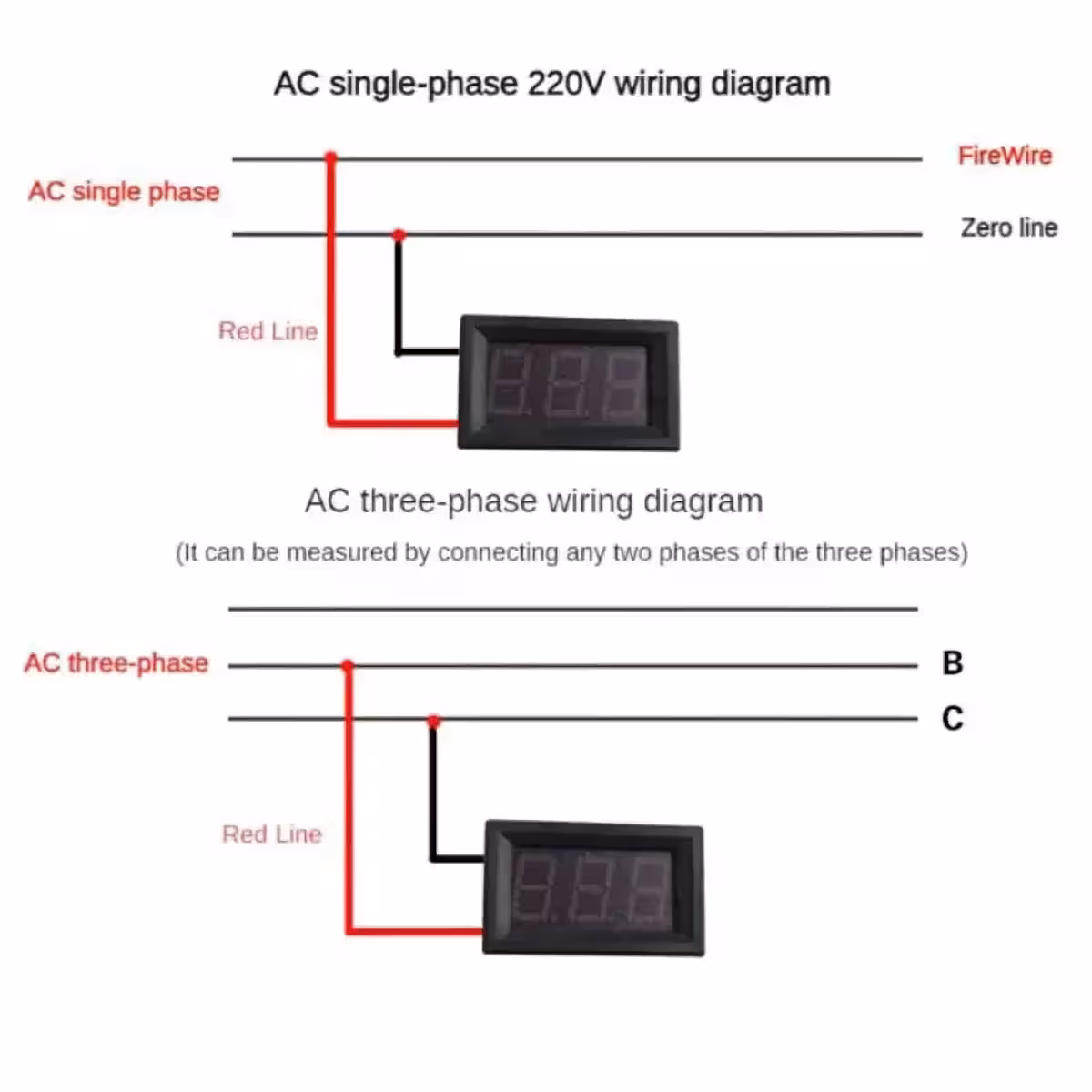 Voltmetru Digital pentru Curent Alternativ (AC) – Compatibil Monofazat și Trifazat, Afișaj LED Albastru
